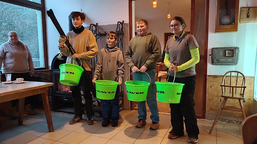 Po zvážení úlovků bylo jasno – juniorským mistrem ČR v zimním feederu se stal David Šmůla z Rybářského kroužku Dobřany.