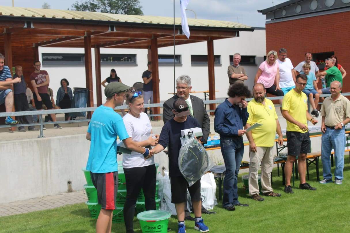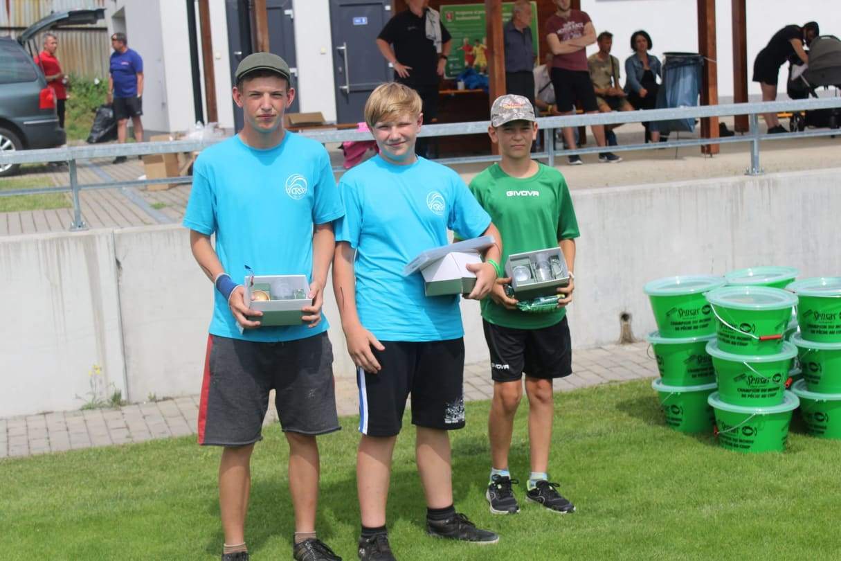Velmi brzy ráno v sobotu jsme začali připravovat krmení a živou nástrahu na lov ryb. Z tréninku jsme měli připravenou taktiku a udice tak, aby se nám dařilo. První kolo závodu se vyvíjel velmi dobře až možná nad naše očekávání. Dařilo se nám cíleně lovit ryby ve složení cejnek malý, cejn a plotice. Jen s většími kapry jsme si neuměli poradit a ti nám často naše slabé návazce utrhli. Po prvním kole jsme ve dvou sektorech měli umístění 1. Ve dvou sektorech umístění 2. V dalších dvou sektorech jsme měli 3. a 4. místo. Všichni víme, že druhá kola již bývají těžší i my jsme se s druhým kolem statečně porvali. Po druhém kole jsme opět díky perfektním přístupu k lovu obsadili v sektoru B s Matějem krásné 1. místo a tím se potvrdila i jeho výhra ze závodů v lovu ryb udici v kategorii žáci. Standa v sektoru A obsadil 2. místo a to ho vyneslo na bronzové umístění v lovu ryb udici. Ondra v kategorii dorostu statečně bojoval s konkurencí a s kapry, které se mu ale nedařilo vytáhnout, avšak i horší umístění z druhého kola mu stačilo na 3. místo z lovu ryb udicí. Nina se součtem umístění 4 obsadila krásné 2. místo z tohoto závodu. Díky správně zvolené taktice a výborným výsledkům náš tým obsadil v této disciplíně suverénně 1. místo.